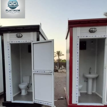 كرفانات الحمامات من بلاتينيوم وحدات جاهزة للاستخدام تجمع بين التصميم العصري والجودة العالية والمتانة لتوفير مرافق صحية كاملة في أي موقع